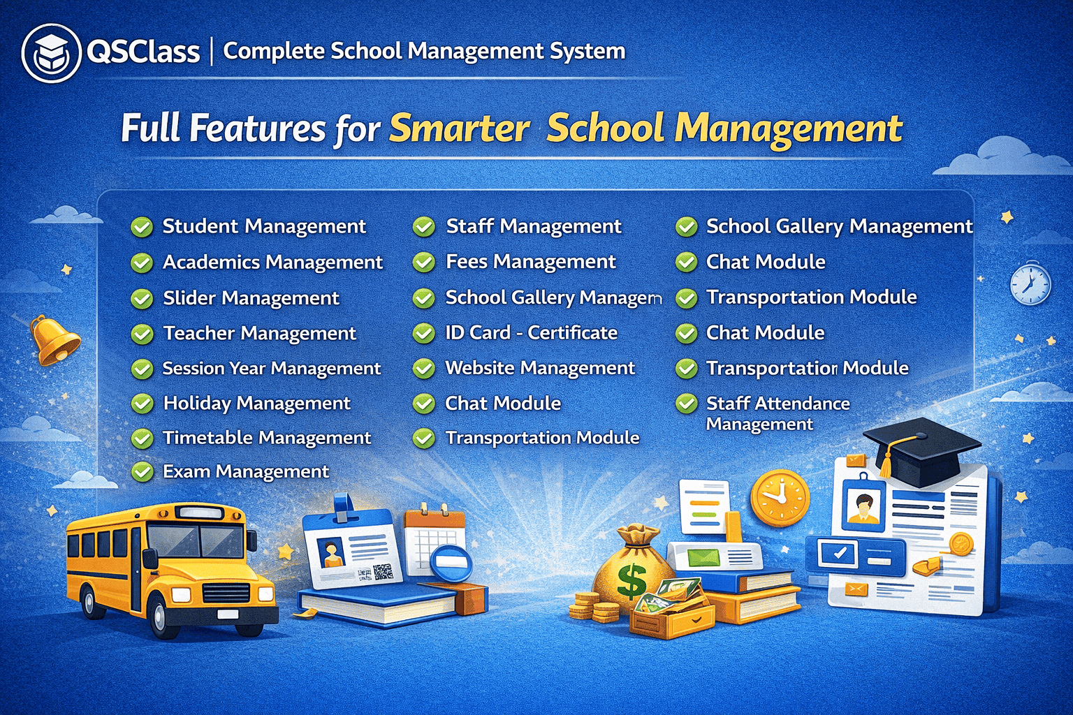 Discover the next generation of education with QSClass. Simplify attendance, assignments, exams, and beyond, while enhancing your school’s efficiency and student engagement.